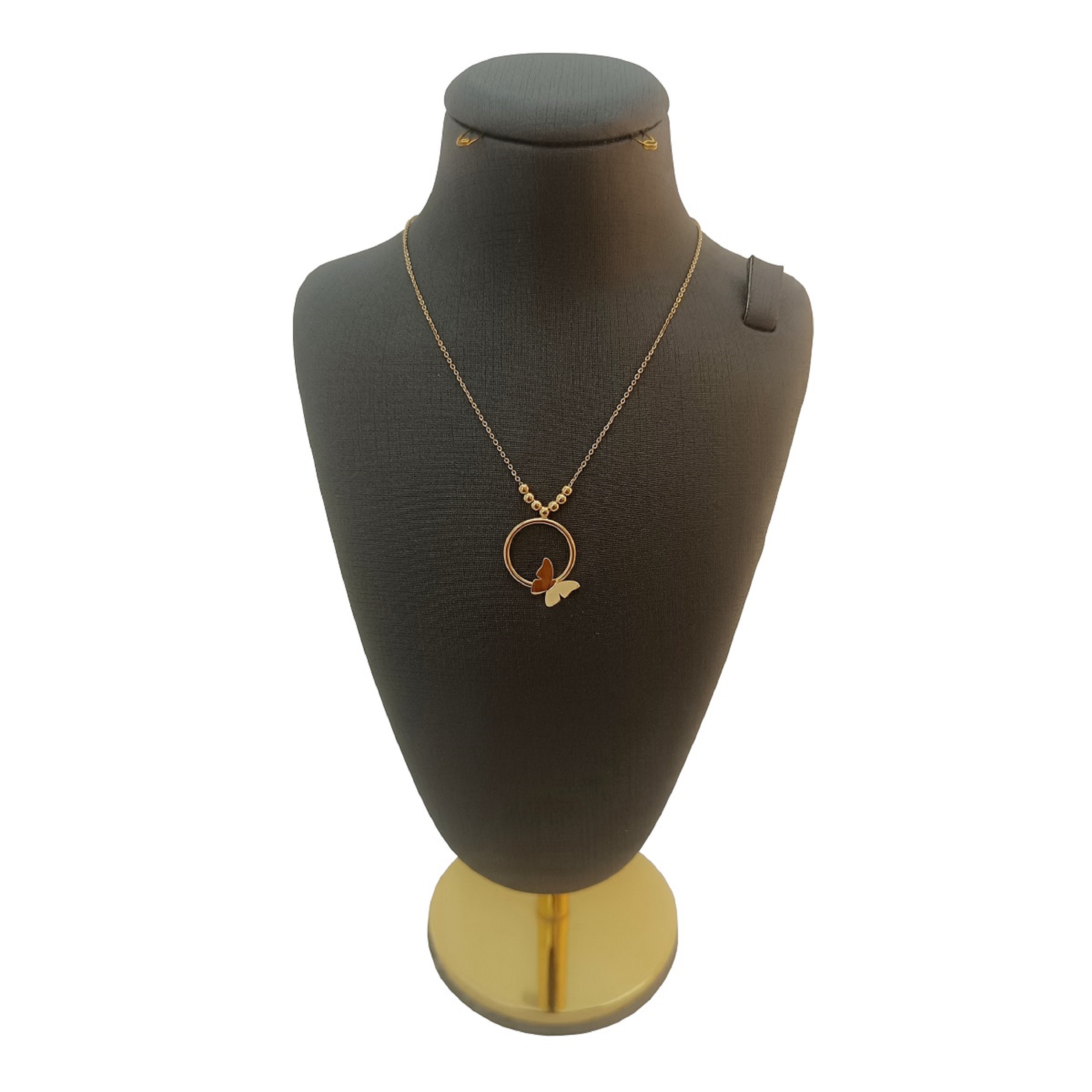 گردنبند آشین با طراحی لطیف و مینیمال، ترکیبی از یک حلقه ظریف طلایی و آویز پروانهای شکل است که حس لطافت، آزادی و زیبایی را القا میکند.