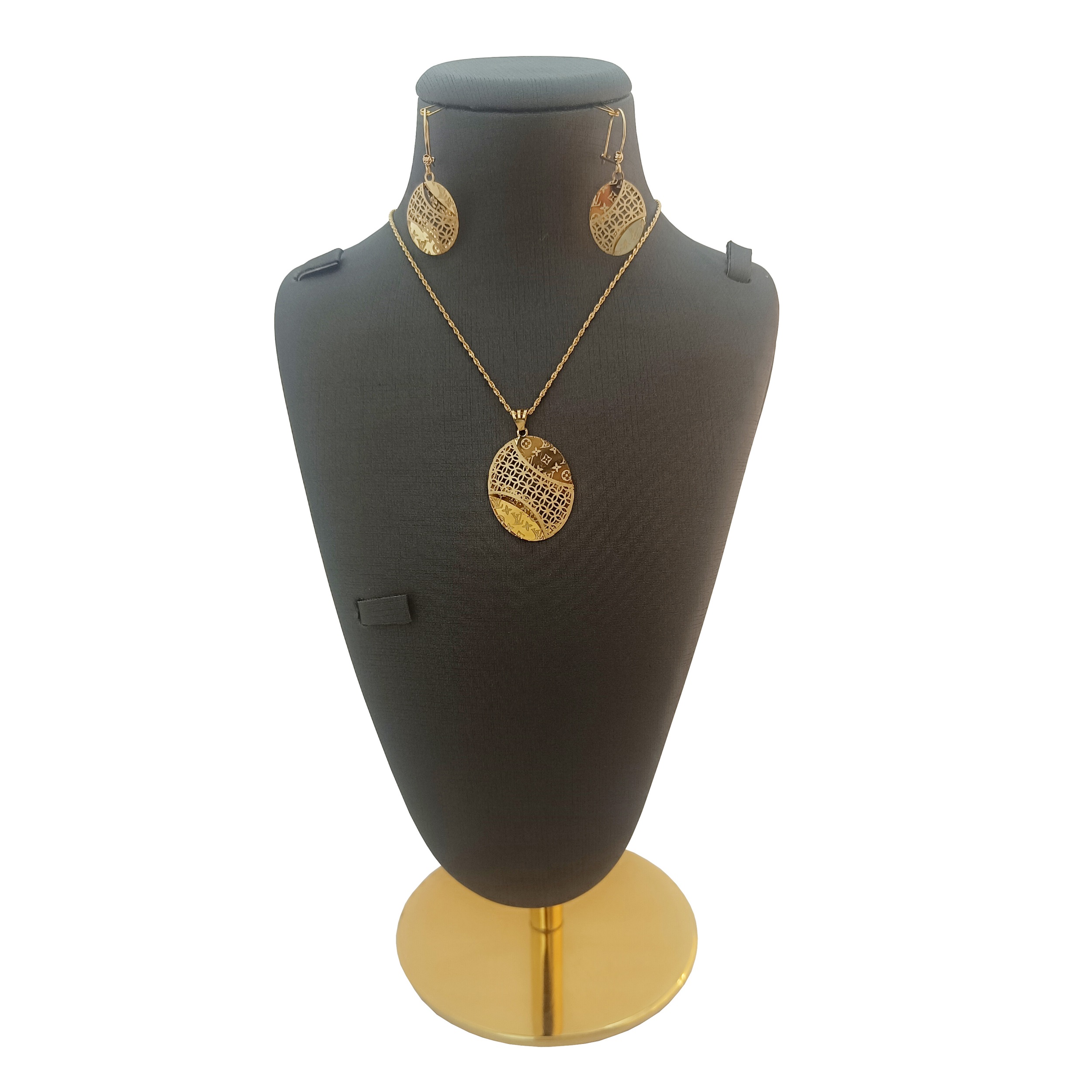 این نیمست زیبا با طراحی مدرن و الهامگرفته از نقشهای دایرهای، ترکیبی از سادگی و جذابیت را به نمایش میگذارد. پلاک و گوشوارهها با طرحهای هندسی و بافتدار، جلوهای خاص و چشمگیر ایجاد کردهاند که آن را برای استایل روزمره و حتی مهمانیها مناسب میسازد.
